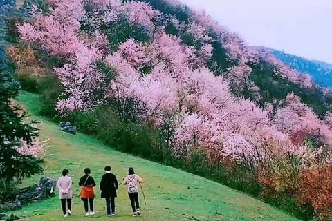 11:30到达山顶野野群,看漫山遍野樱花,樱花树下野餐;