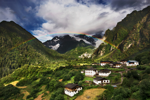 早上起来观赏梅里雪山“日照金山”,当第一缕朝阳把梅里雪山主峰“卡瓦格博”染成了金色,那耀眼的金色让每个人心潮澎湃,内心震憾。香格里拉一词在藏语意为“心中的日月”;而日照金山正是太阳的圣洁之光照耀在卡瓦格博之巅峰,象征着藏民心中的纯洁与祝福;观赏完日照金山后吃罢早餐由当地向导带队大家沿澜沧江大峡谷约驱车一个半小时时后便到西当村,这里是徒步雨崩的起点,从西当徒步约四小时到达海拔3700米的南宗垭口,再从垭口向下徙步约二个小时便到达梅里雪山下的世外桃源雨崩村(特别说明:如遇特殊情况我们会从尼农进入雨崩村)。雨崩藏语为经书的意思,这里四面群山簇拥,因其地理环境独特,所以人烟稀少,被誉为香格里拉缩影,是真正意义与世隔绝的世外桃源。
