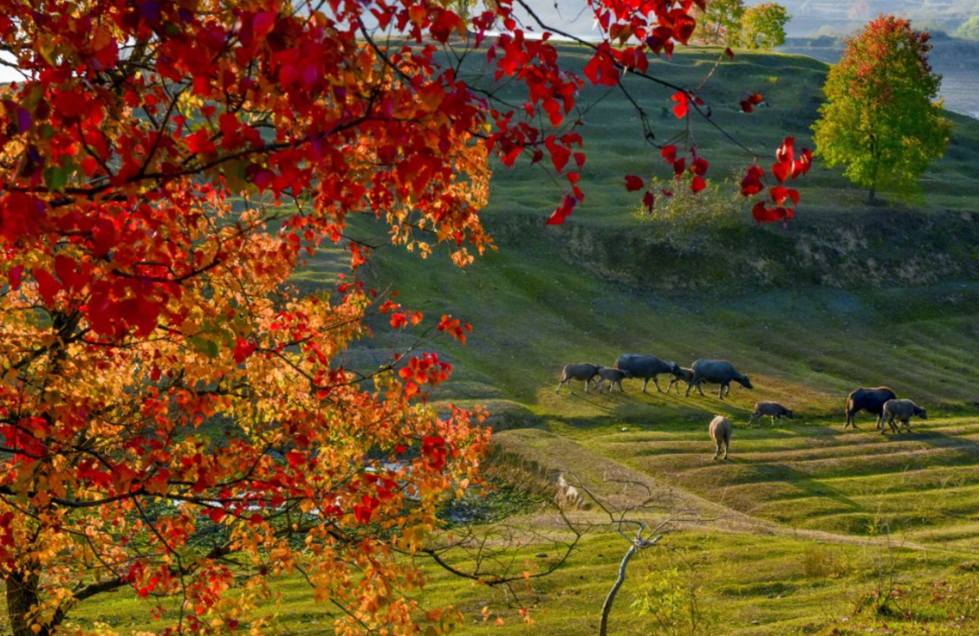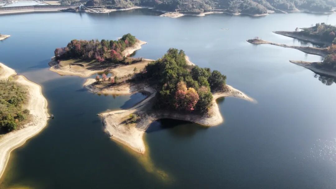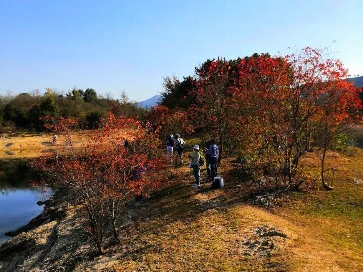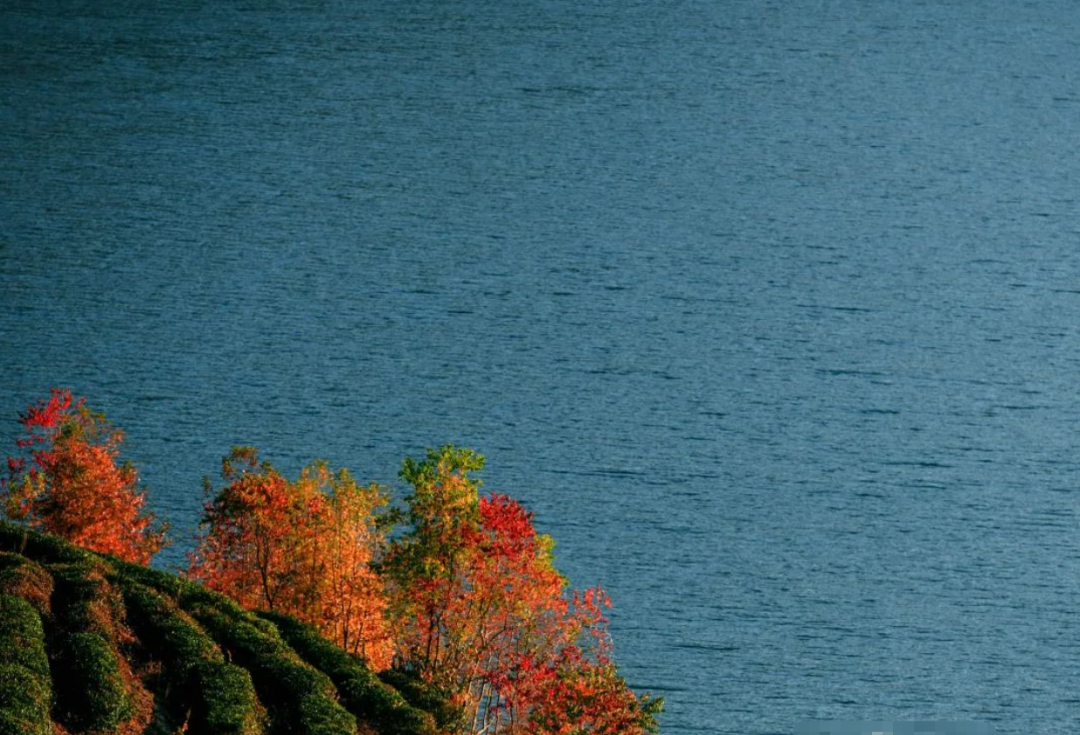 由于昼夜温差大,每年秋末冬初,当一阵阵寒潮来袭,乌桕树和枫树的树叶便留姿色在枝头,从山岭到水库岸线,红叶色彩呈梯次变化,从黄绿相间、姹紫嫣红到色彩斑驳再到七彩织锦,美得就像一幅幅水彩画,十分动人!