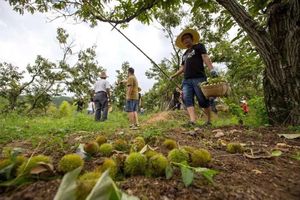 板栗山上有1万多棵板栗树,捡不完,根本捡不完。