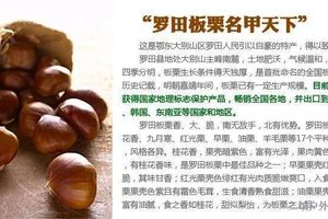 罗田位于大别山南麓,大别山主峰雄居境内,这里森林茂密,自然环境优美,是首批命名的全国板栗之乡。罗田板栗,栽培总面积达4万公顷,年产板栗2万吨以上,2006罗田板栗年产量已经高达3000万公斤,其产量、面积均居全国之冠。产品以其果大(特级板栗每公斤40粒以内),质优而闻名于世,罗田所产板栗颜色鲜艳,营养丰富,极耐贮藏。并且上市时间长,一般8月底板栗上市。
