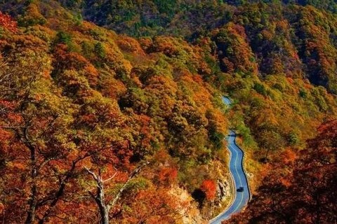 金秋时节,这条路有如无边无际的重彩油墨,把群山装点得美丽极了!