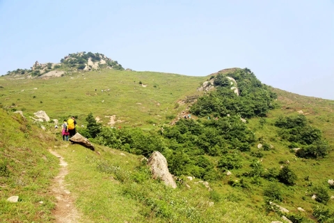 兴旺寨上无人烟,草木稀疏,怪石林立颇具高山草甸况味;山寨依山为基,以石筑墙,地势险要,易守难攻。站在废弃的寨墙上,凝眸远兆,山峦起伏,重峦叠障,白纱飘逸。山脉下是蜿蜒至远方的河流和一条条路路通的公路。
