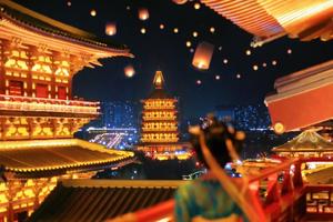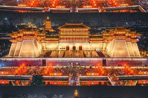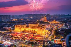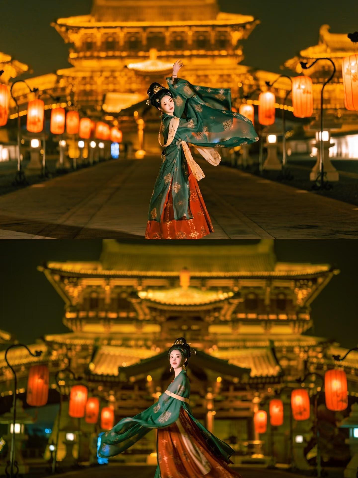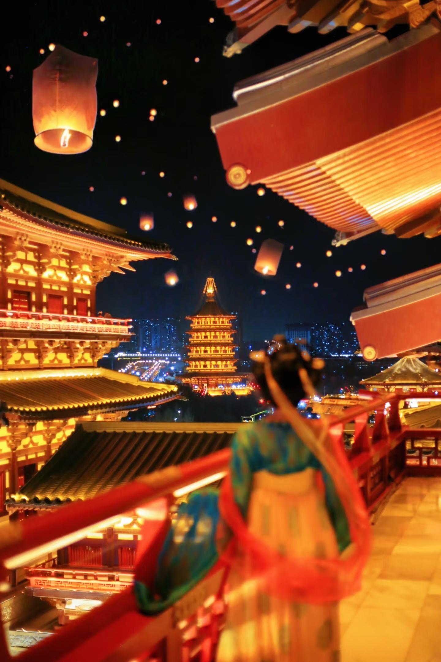 洛邑古城——穿越千年文化踏入洛邑古城,仿若回到盛唐。万盏灯笼点亮,映照古建,氛围如梦如幻。每晚19:30和20:30文峰塔灯光秀上演。漫步还能偶遇街头非遗表演与汉服巡游,近距离感受传统文化与盛唐风情。