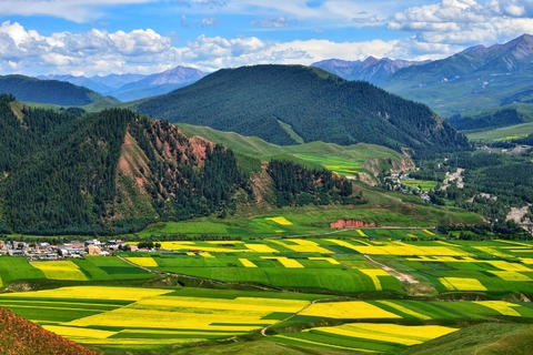 早餐后,从西宁市区出发,沿途欣赏祁连山草原美景,到达【门源百里油菜花海】,门源县是北方小油菜发源地,是全国乃至全世界zui大的小油菜种植区,种植面积达50万亩。这里可欣赏中国最壮观的油菜花海景观,云层不厚即可在此眺望到岗什卡雪山。这里是中国zui美的草原之一,绵延无边,羊儿、马儿、牦牛在宁静悠闲的吃草。山脚随便一个村庄,都是绝美的风景。