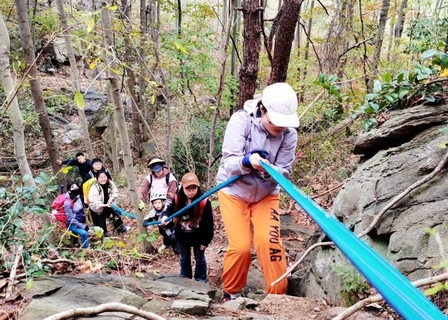 【装备】扁带、绳子、登山鞋、护膝、护腿、攀爬手套、双肩包,速干衣、遮阳帽等。三瓶水,中午带路餐。
