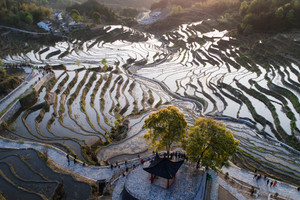 雾云山梯田在大山里静静的沉睡了一千多年,不被世人知晓;梯田周围的村民默默的耕种了一代一代,不与世界争鸣。