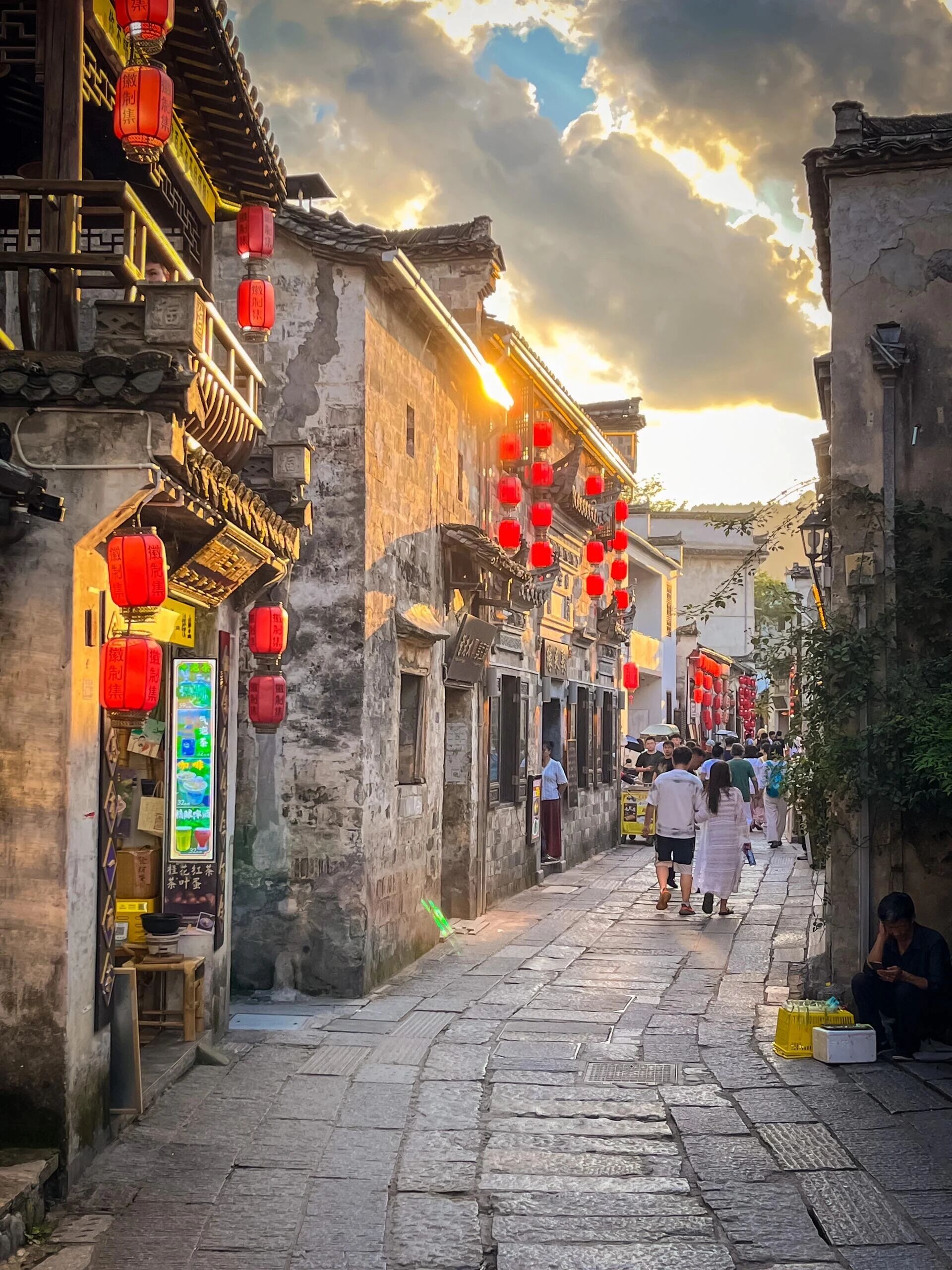 下午大概3点左右到达宏村游玩,宏村古建筑群以其精美的徽派三雕(木雕、石雕、砖雕)而闻名。其中清代盐商建造的"承志堂"占地二千多平方米,其正厅横梁、斗拱、花门、窗棂上的木刻,层次繁复、人物众多,人不同面,面不同神,堪称徽派"三雕"艺术中的木雕精品。整个村落鳞次栉比的层楼叠院与旖旎的湖光山色交相辉映,动静相宜,处处是景,步步入画。