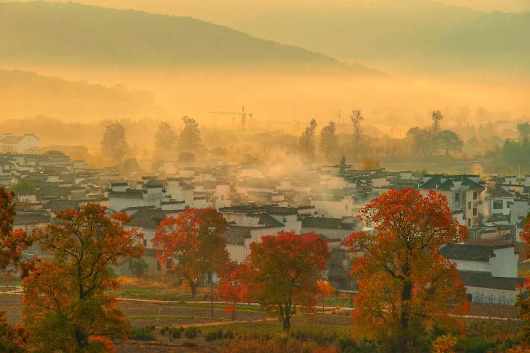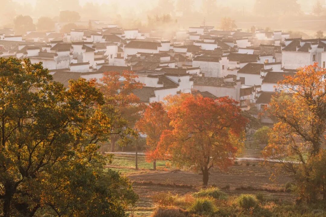 早上5:00集合前往【卢村观景台】(不进村)站在观景台从高往低俯瞰卢村,白墙黛瓦的徽派建筑被田野环绕,五彩斑斓的乌桕树点缀在田野中,房前屋后,一幅徽州秋色画卷诞生了。游玩结束回到宏村客栈早餐,早餐后我们前往中国四大红叶圣地【塔川秋色】田野、山村、秋岚、红叶,绝对是美好的享受,全身心的放松!村口及周围地带多值乌桕树,且古树参天,每到秋季,经过霜降,由绿变黄,由黄变红,中间呈七彩颜色。满山秋叶、色彩斑斓,粉墙黛瓦掩映其中,美不胜收。是摄影发烧友的最佳素材。这个被黄、橙、浅红、深红等各种色彩的秋叶点缀的古道山村,散发一年最迷人的魅力!