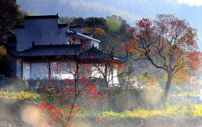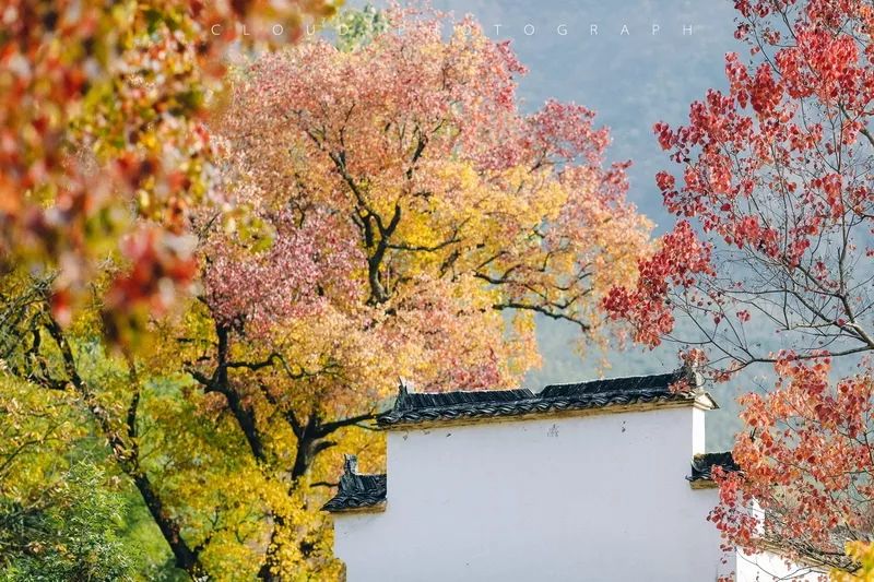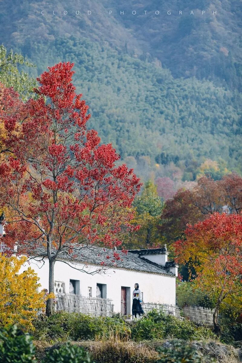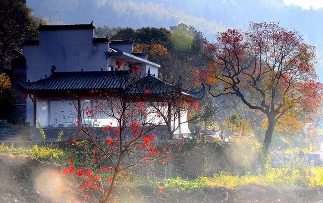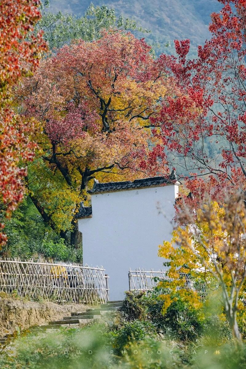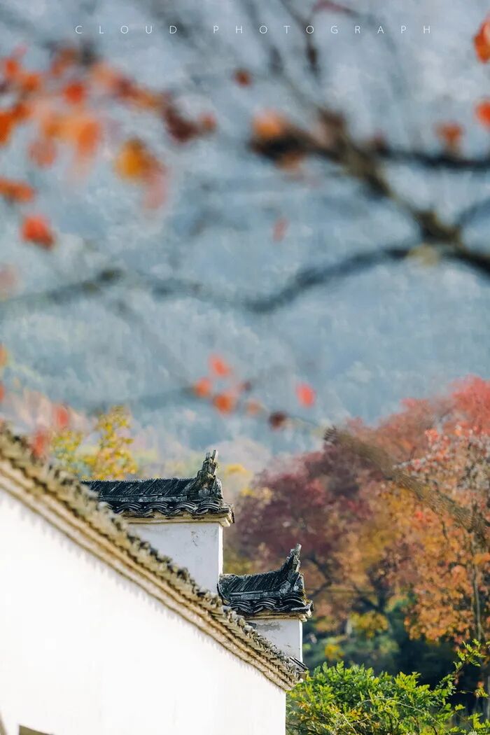 比塔川更加小众的卢村有着景色不输的乌桕树,晨雾+炊烟+红枫+乌桕,徽州秋色天花板。
