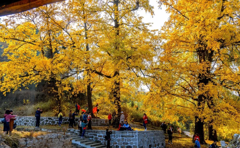 11:00左右抵达银杏村,徜徉在秋的童话世界里,流连银杏之乡,12点左右自由路餐、后体验秋色的绝佳胜境。