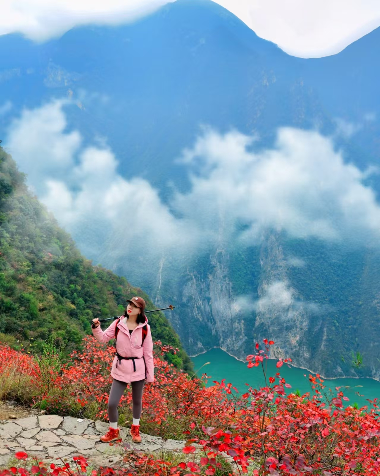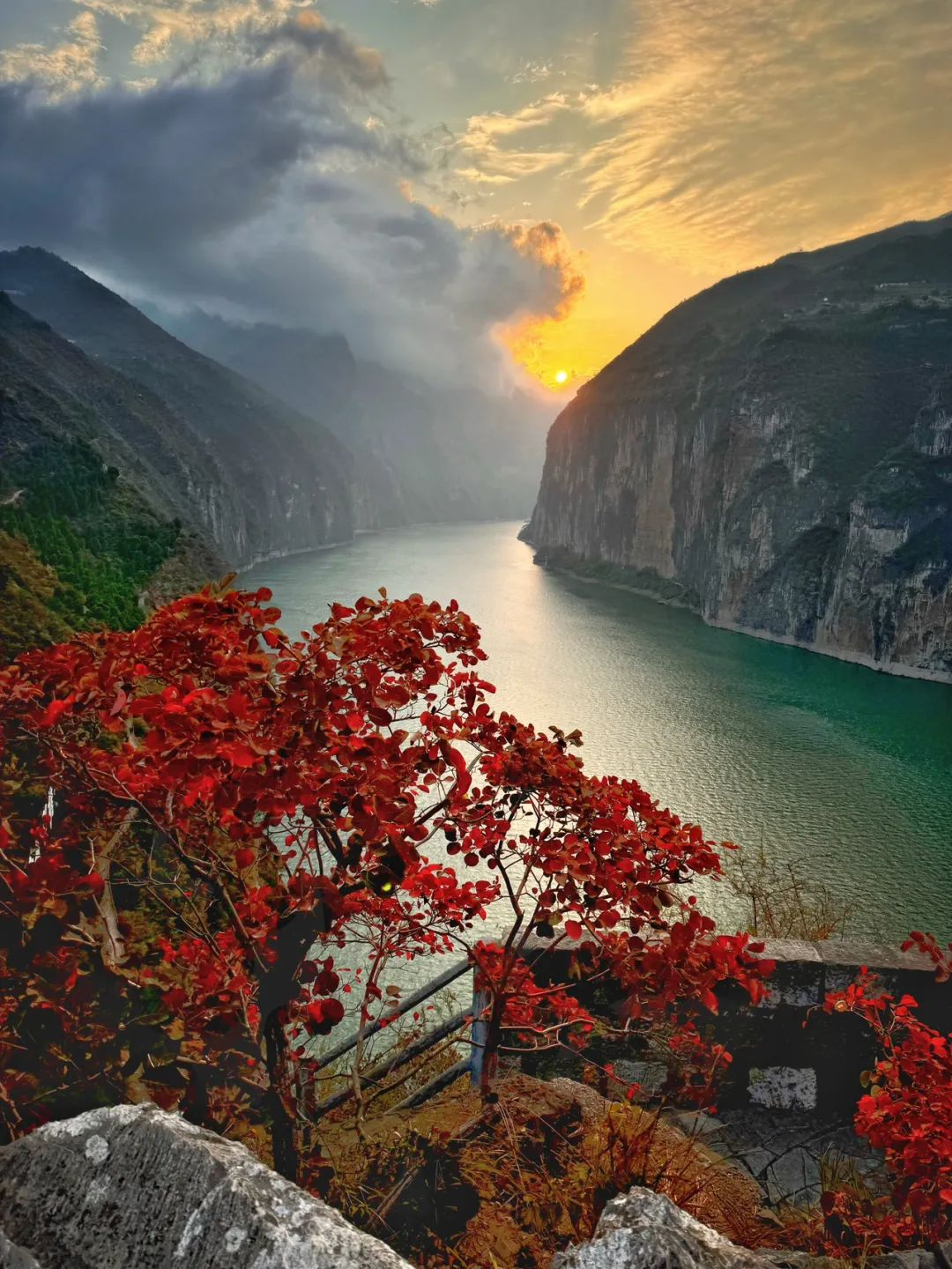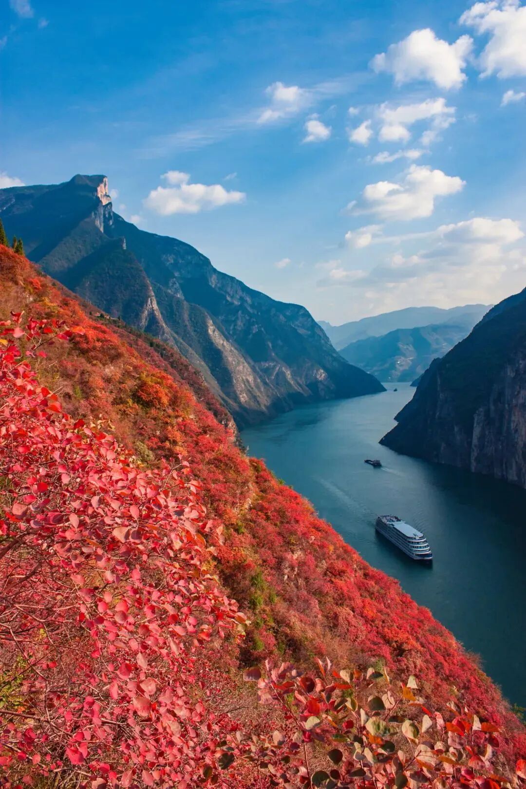 三峡之巅,不仅因其壮丽的自然风光而闻名,更因那份攀登的成就感而令人向往。徒步至顶,不仅是对体力与意志的一次考验,更是对自我极限的一次突破。当站在山顶,俯瞰脚下的峡谷与蜿蜒的河流,那一刻的震撼与释然,是对所有努力与汗水最好的奖赏。而眼前的红叶,如同胜利的旗帜,在风中轻轻摇曳,庆祝着每一位勇者的到来。