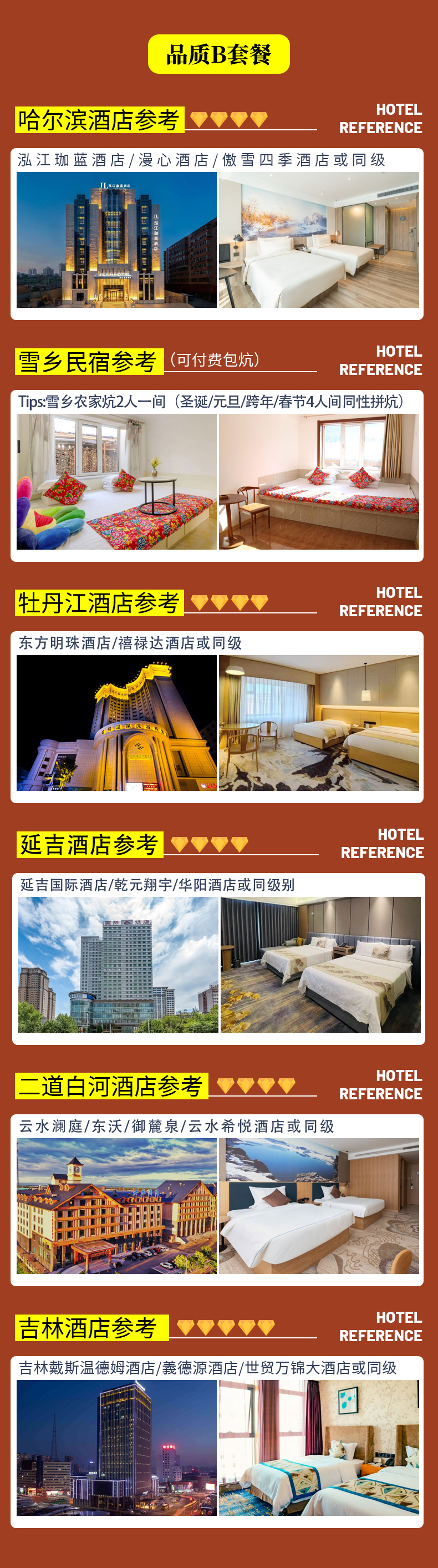 套餐住宿酒店标准不同,其他接待标准一致