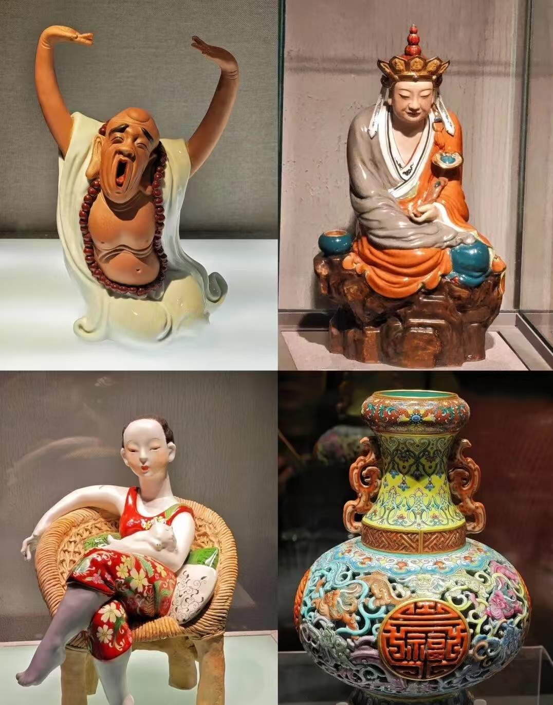 中国陶瓷博物馆既是陶瓷艺术的殿堂,也是一部立体的中国陶瓷史。这里汇聚各时期精品瓷器,种类丰富、工艺精湛。漫步其间,能领略陶瓷在造型、装饰、釉色上的演变:从秦汉陶器的简约大气,到唐三彩的色彩斑斓;从宋代名窑的温润——汝窑天青、官窑粉青、哥窑开片、钧窑窑变、定窑白瓷,到元青花的异域风情,明青花的典雅与五彩的绚丽,再到清粉彩、珐琅彩的细腻,乃至近现代陶瓷在传承中创新的活力。