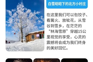 雪乡的晨景是最美的哦,拥着层层叠叠的积雪,一座座相连的像蘑菇似的雪屋,形状各异,像奔马、卧兔、神龟、巨蘑……千姿百态。所以呀,我们要早早的起床去感受一下,然后拍几张让别人嫉妒的片片吧!还有啊,羊草山上的日出也是一种神奇的梦幻世界。白雪,红日,雪凇,祥云完美的结合在一起,画面赞到爆的,但是,你要起的很早很早才能看到喽。