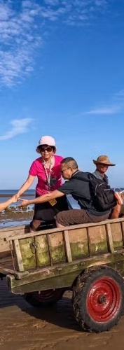 傍晚前往【放坡村】海边拍牛车赶海、灯塔日落。放坡村一带的海滩结实得可以跑汽车,于是充气轱辘的牛车是当地渔民往来岸上和海上渔船的主要运输和交通工具。渔民用牛车可以方便地将渔船所需网具等用品运到海里装上渔船,将渔获或需修补的网具等拉上岸,甚至可以作为人员来往渔船的交通工具,非常独特的人文景观。拍摄完成前往徐闻县城入住。
