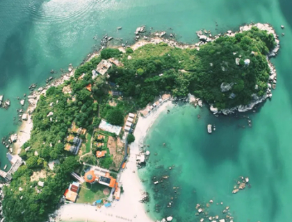 午餐后乘船抵达【三角洲岛】岛上分布有三个晶莹洁白的沙滩,一个新月形的内海湾和一个天然 石雕公园,总面积约 22 公顷,其中陆地面积约为 16 公顷,由大小两个岛屿构成,退潮时两岛由沙滩相连。海岛绿树葱 茏,楼阁隐现,形状各异的奇石天然成趣栩栩如生,仿佛传说中的篷莱仙岛,世外桃园。游客在岛上自由活动,享受阳 光沙滩的同时,尽情投入岛上精彩纷呈的娱乐项目之中(部分项目需自理),如:拔河比赛、沙滩排球比赛、足球比赛、 钓鱼、OP 帆船、独木舟、香蕉船、潜水等。