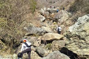 无人谷位于孝感大悟县,此次徒步登山路线难度适中,全程有峡谷攀爬、小溪瀑布、树林穿越、金顶寺庙和风车打卡,登顶后一览众山小,风景优美,趣味十足!后段下坡大多为草甸路段,最后下到林子回公路到达终点。