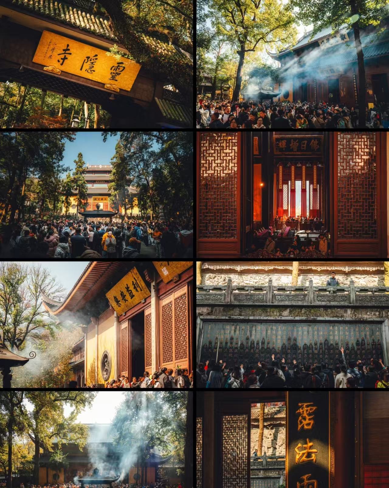 灵隐寺,又名云林寺,地处浙江省杭州市西湖以西,背靠北高峰,面朝飞来峰,为杭州最早的名刹,始建于东晋咸和元年(公元326年),占地面积约87000平方米。如今的灵隐寺主要由天王殿、大雄宝殿、药师殿、直指堂(法堂)、华严殿为中轴线,两边附以五百罗汉堂、济公殿、联灯阁、华严阁、大悲楼、方丈楼等建筑所构成
