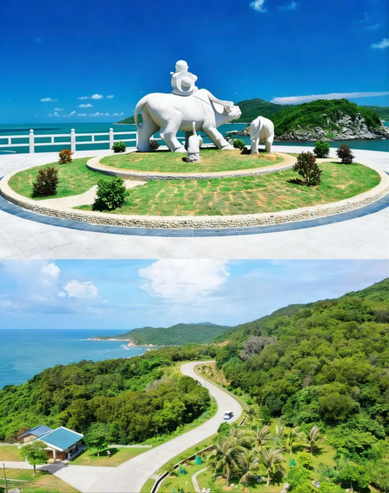 临海观景公园,也是环岛游必停的打卡点。公园占地2100㎡,按神牛传说打造,核心是神牛与牛背鹭雕塑,搭配开阔的观海台与绿植区;临崖面海,站在观景台能远眺群岛、渔船与碧海蓝天,日落时分霞光洒在海面,出片超美。