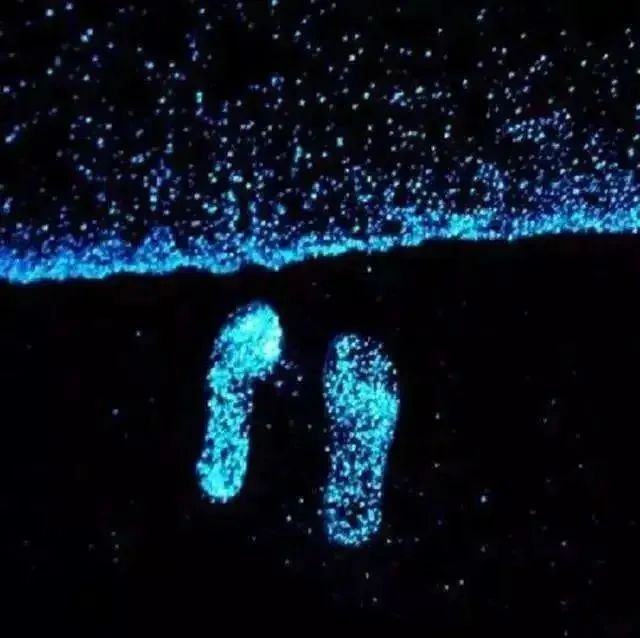 脚底也会发出闪闪的蓝光,出现一个个“蓝脚印”