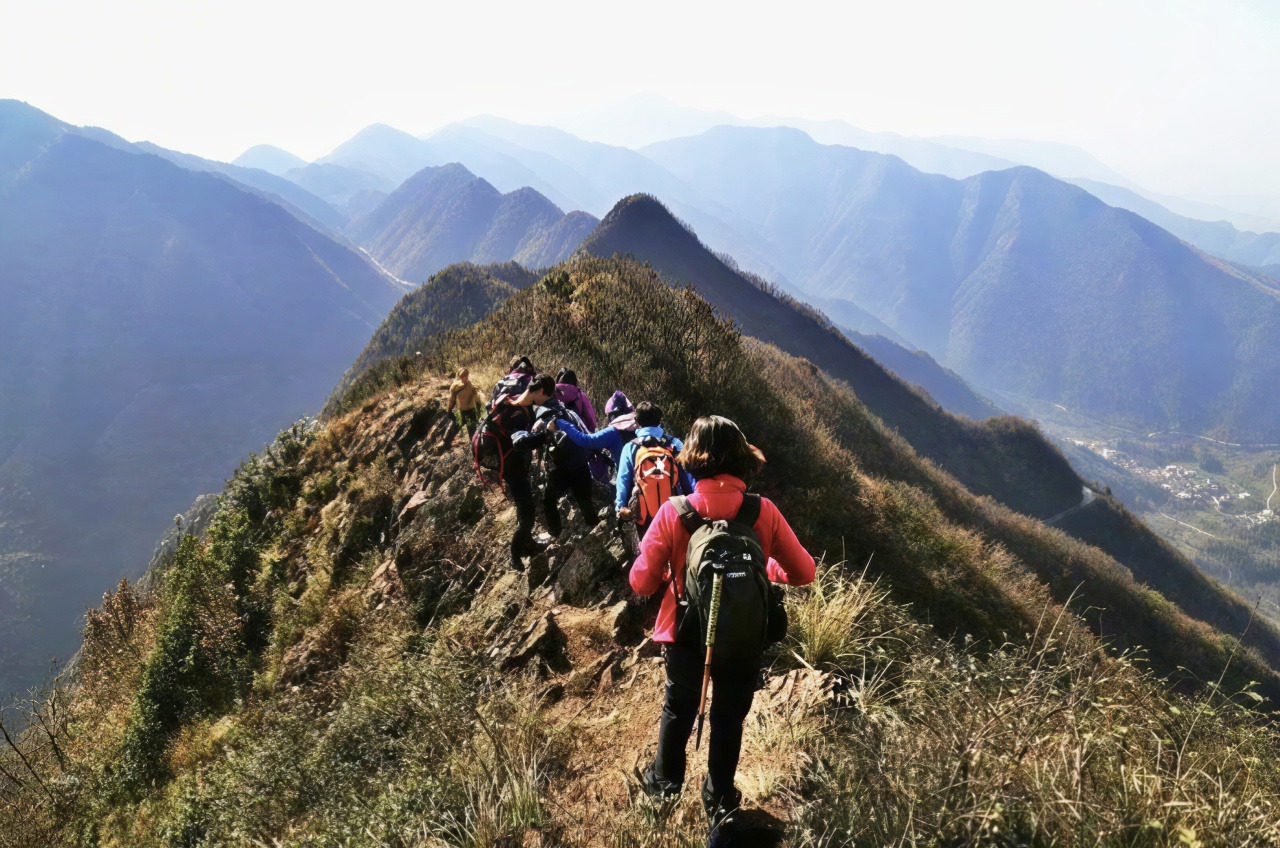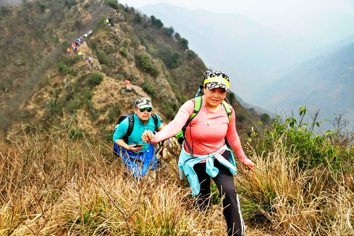龙角山山脊长度大约5公里,山脊上大多是上上下下的陡坡,最大坡度接近90度,陡峭险峻,是户外老驴磨爪新驴练蹄的绝妙去处!