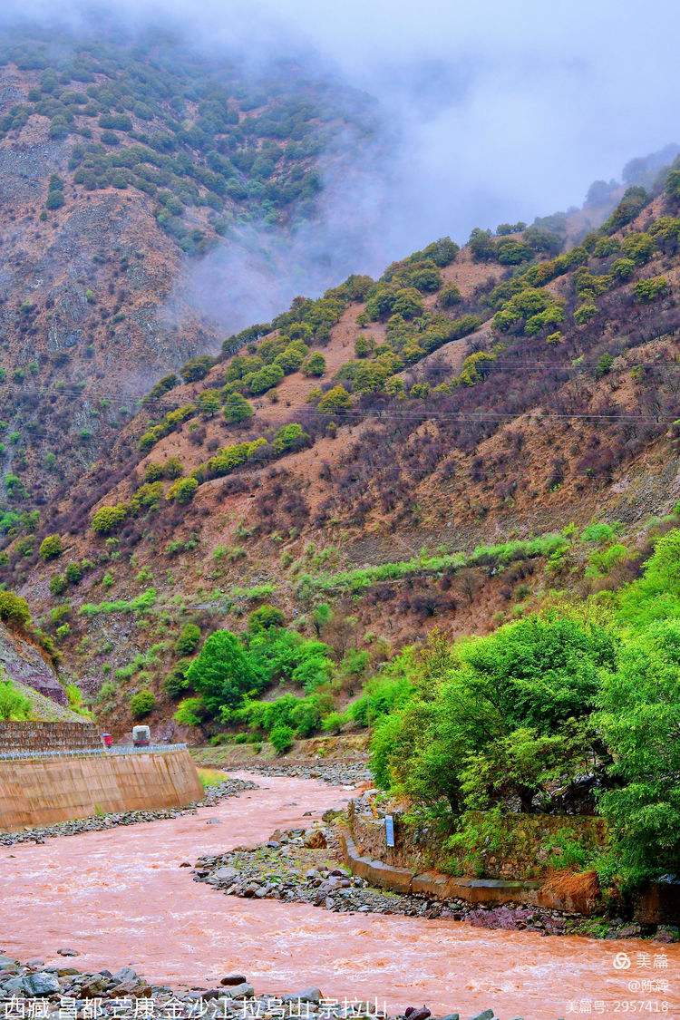 觉巴山并不高,垭口的标高也只是3940米,但由于澜沧江千百年来的深深下切,使得江岸壁立千仞,一派荒凉与坚硬,给人以山高谷深的感觉。这里是横断山区的著名险段之一,30公里盘山路,近2000米的相对高差使觉巴山成了川藏线上最难爬、最费时的一座山。拉乌山(海拔4376米),抵达竹卡(海拔2600米),东达山(海拔5008米)为川藏南线上第二高垭口,夏季草坪青绿,牦牛成群,风光极为美丽。