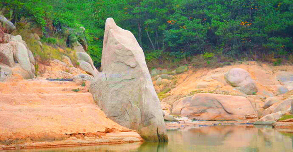 在众多奇山异石之中:巨鲸出水、神龟入海、王母仙桃、神剑开石、玉版压山、铁汉神脚、如来神掌、瑶池仙子、花篮扣妖、果老问道、神像流泪、巨蟒呲牙、观音神眼、金顶神庙、峭壁飞虹、玉箫化竹、参天神树等奇景都是神来之笔!