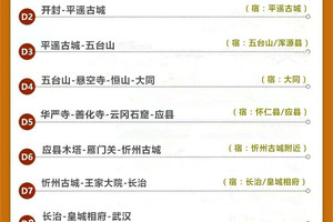 早餐后带好所有行李物品集合出发前往平遥古城,中餐在服务区解决,约14点30抵达平遥古城,入住酒店,随后游玩平遥古城,吃吃平遥的特色小吃,晚上也可以逛逛平遥夜景。