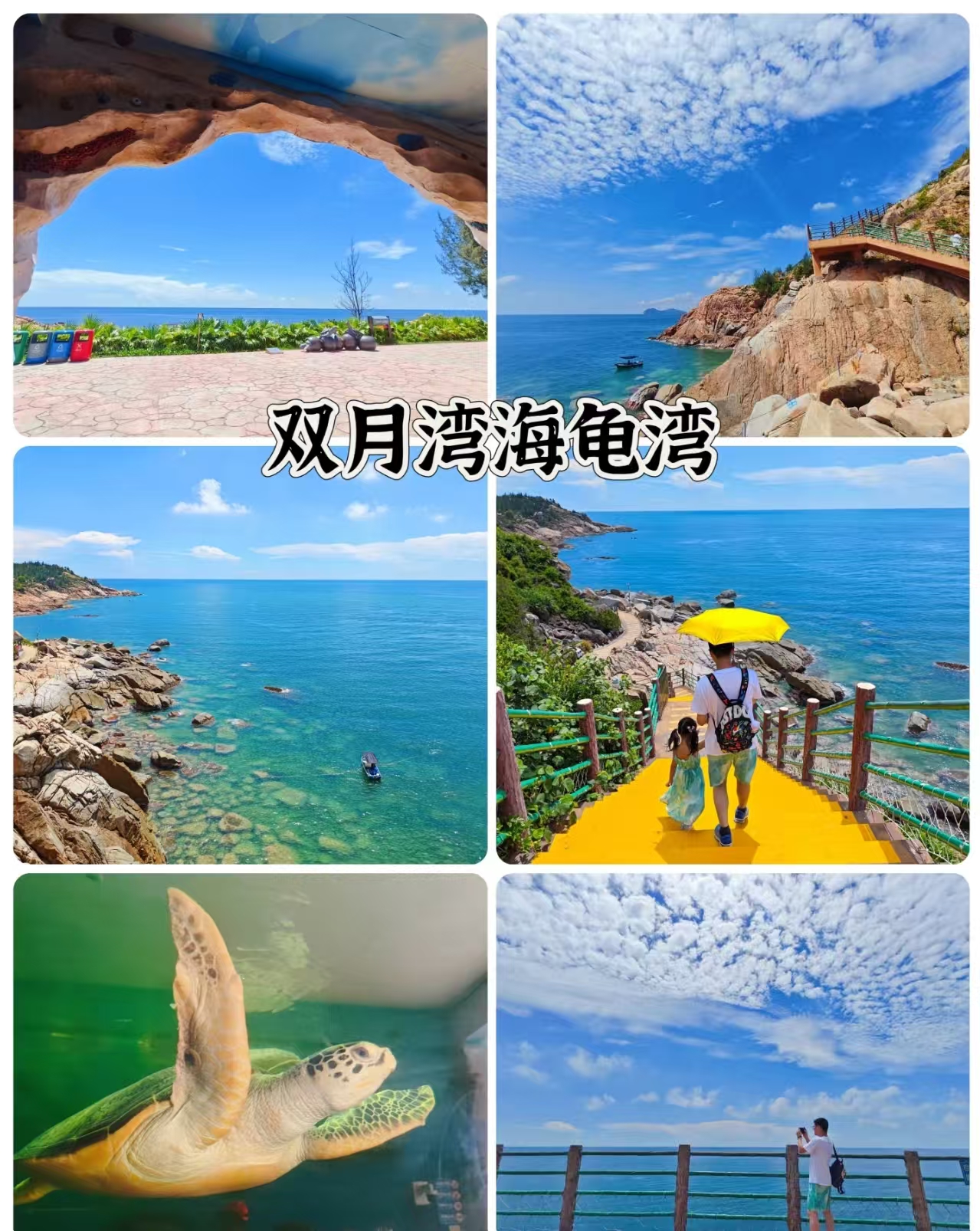早餐后前往惠州双月湾,打卡海龟湾,“广东小垦丁”名不虚传! 沿海栈道蓝到不像真实,海水清澈见底,随便拍都是大片。