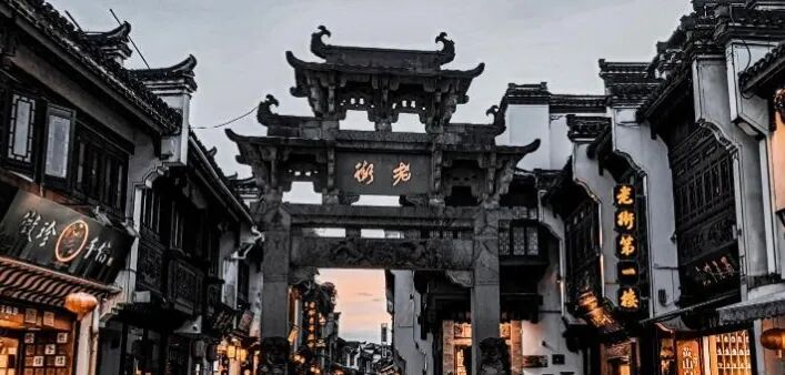 屯溪老街坐落在安徽省黄山市屯溪区中心地段,北面依山,南面傍水,全长1272米,精华部分853米,宽5至8米。包括1条直街、3条横街和18条小巷,由不同年代建成的300余幢徽派建筑构成的整个街巷,呈鱼骨架形分布,西部狭窄、东部较宽。因屯溪老街坐落在横江、率水和新安江三江汇流之处,所以又被称为流动的“清明上河图”,是中国保存最完整、最具有南宋和明清建筑风格的古代街市,也是中国“全国重点文物保护单位”。