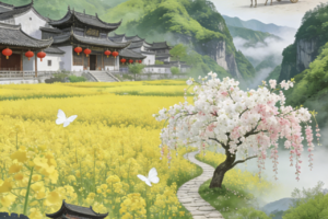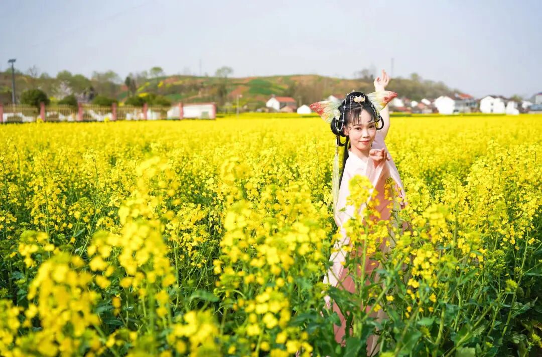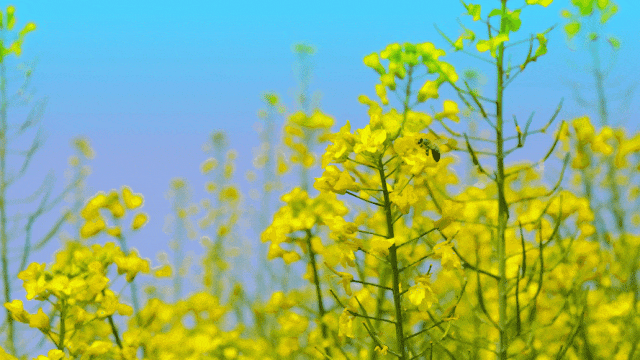 “油菜花开满地黄,丛间蝶舞蜜蜂忙;清风吹拂金波涌,飘溢醉人浓郁香。”