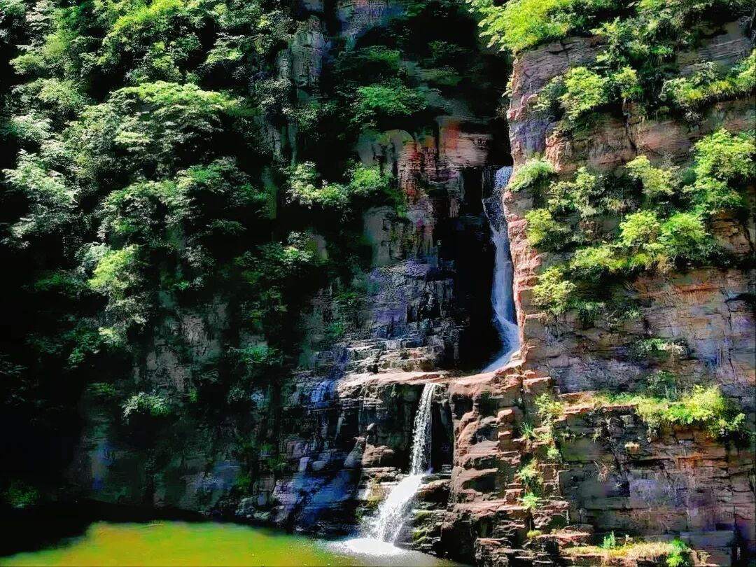 瀑布飞泻,潭水清幽