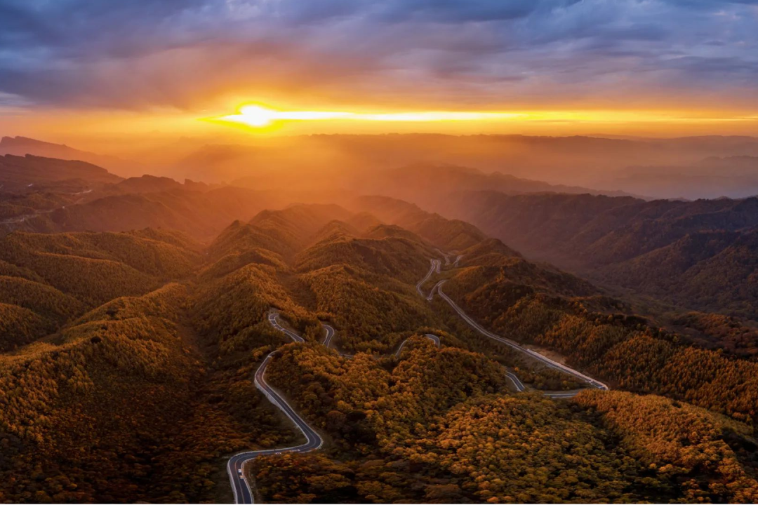 一条条金腰带盘缠在山腰岗峦上