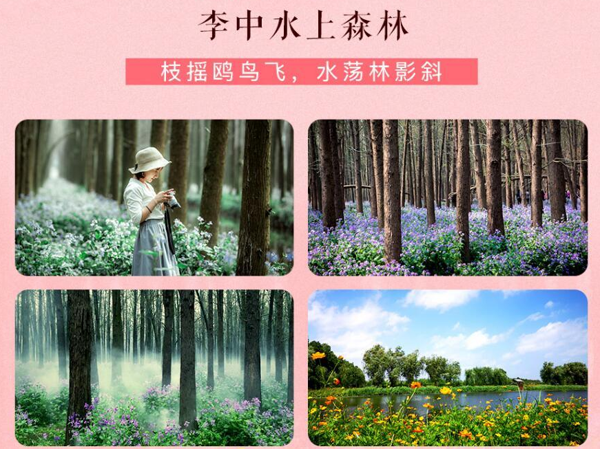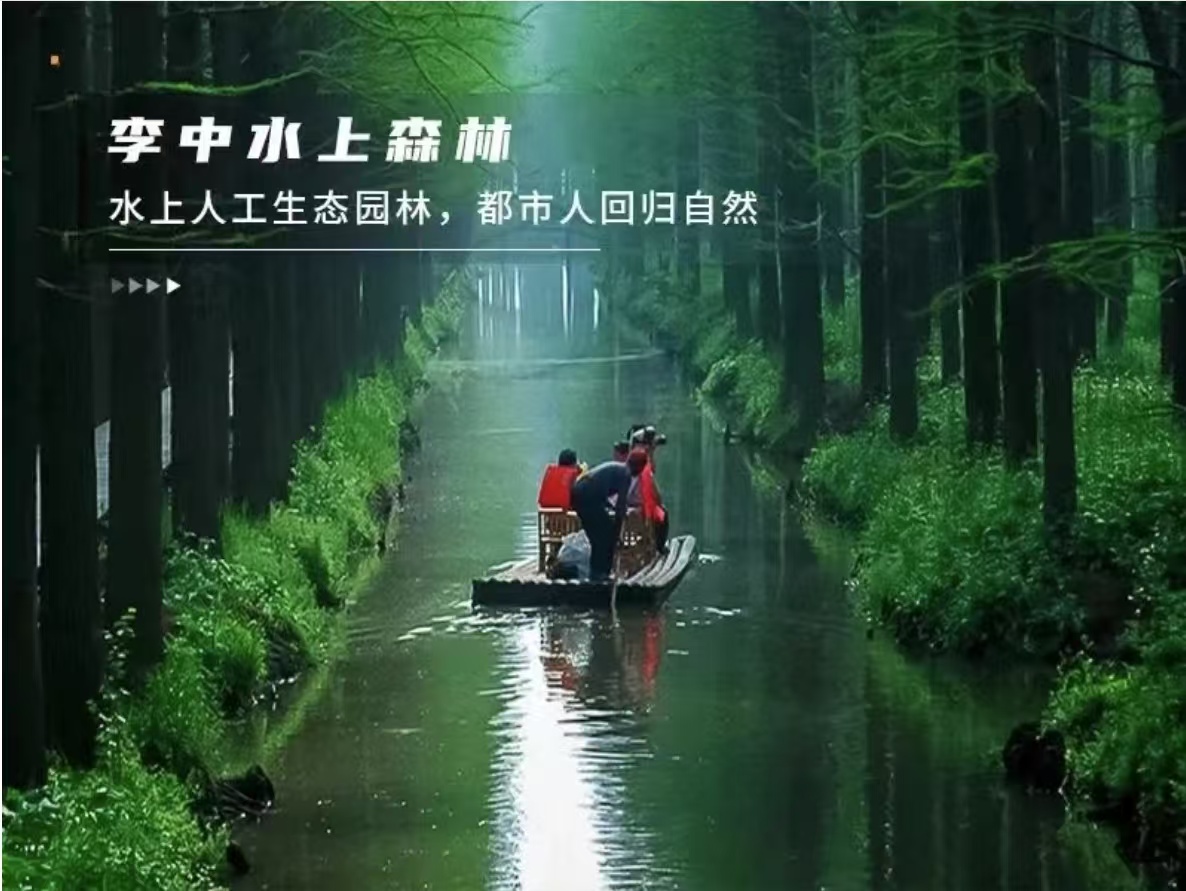 午餐后,我们乘车前往【李中水上森林公园】,进入景区你可以泛舟于纵横交错的河流之上,或置身于高大的水杉林之中,这两者都可以让你欣赏到“树在水中长,鸟在身边飞”的生态美景。筏在林中行,人在画中游。船头张望……只見天上苍鹭盘旋,水中龍潜鱼跃,鱼鹰腾趐忙捕,一派水乡景观。