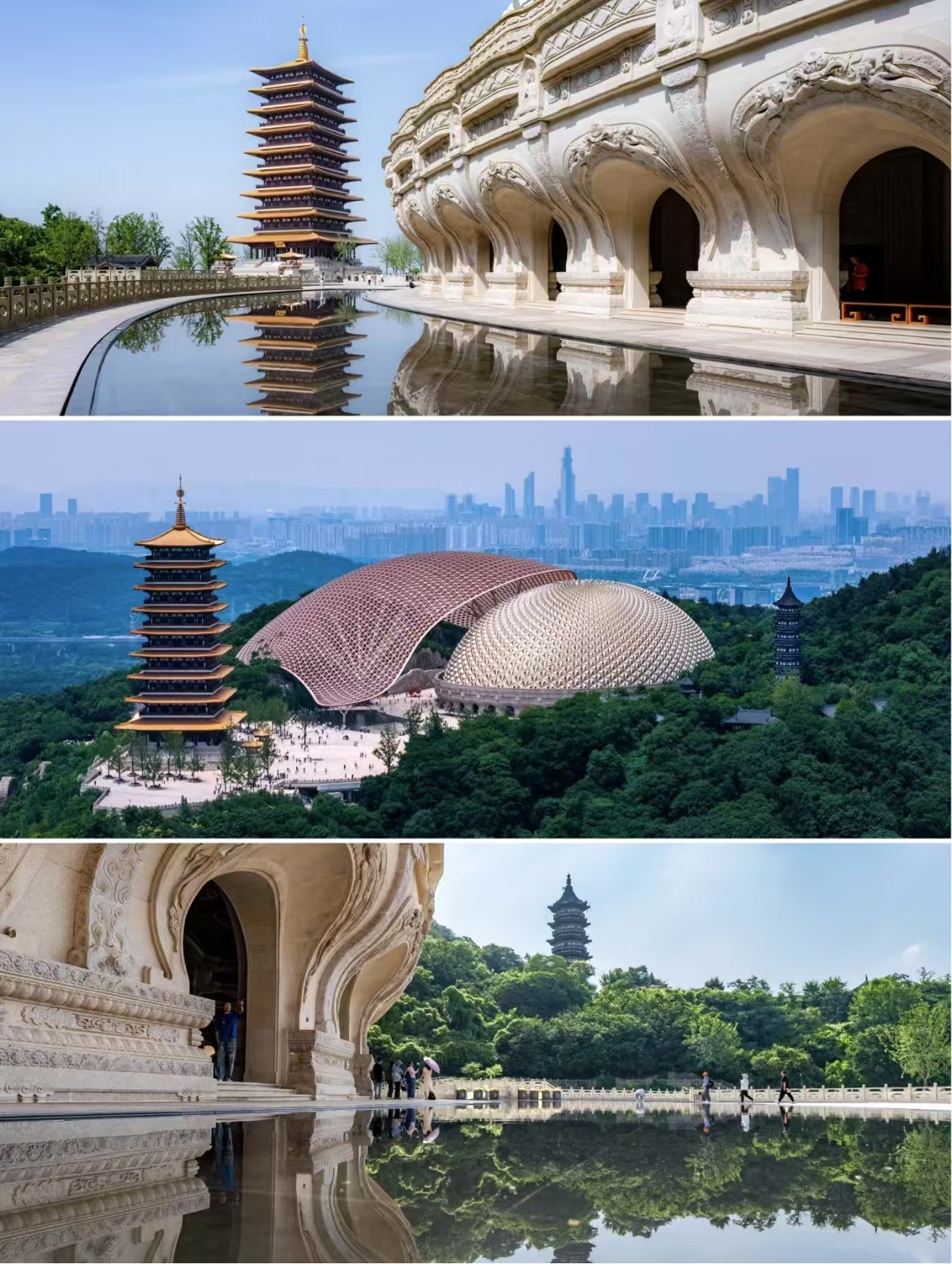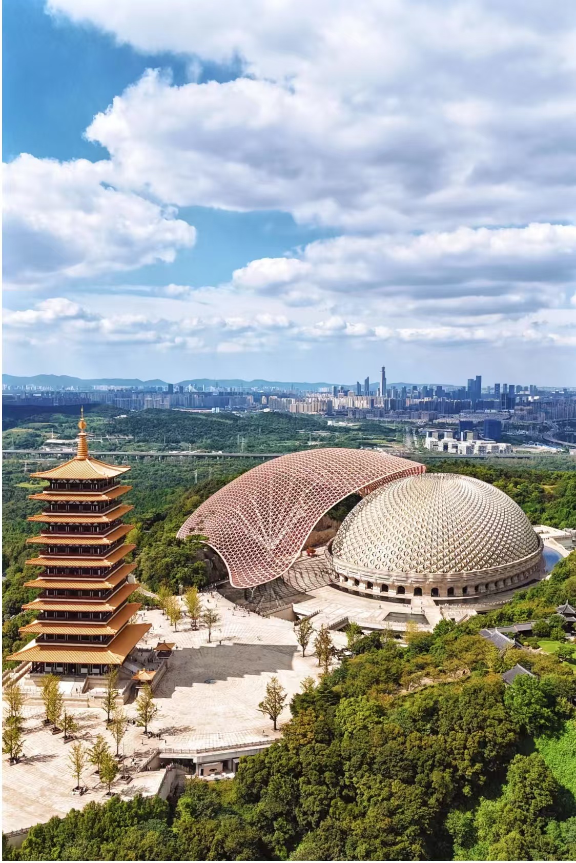 佛顶宫以佛祖顶骨舍利供奉为主题,分为大穹顶和小穹顶两个部分,寓意外供养和内供养。佛顶宫利用原有矿坑建地宫,地下六层,地上三层,很是庄严气派。近年,释迦牟尼佛顶骨舍利将在牛首山被长期供奉,游客可于特殊佛教节日前往佛顶宫瞻礼,运气好,还能瞻仰到佛祖舍利