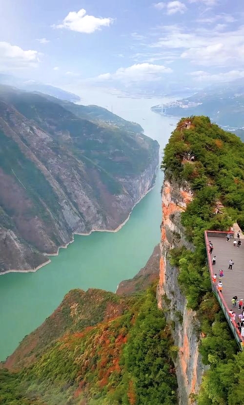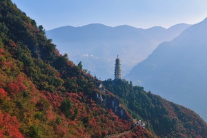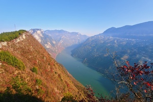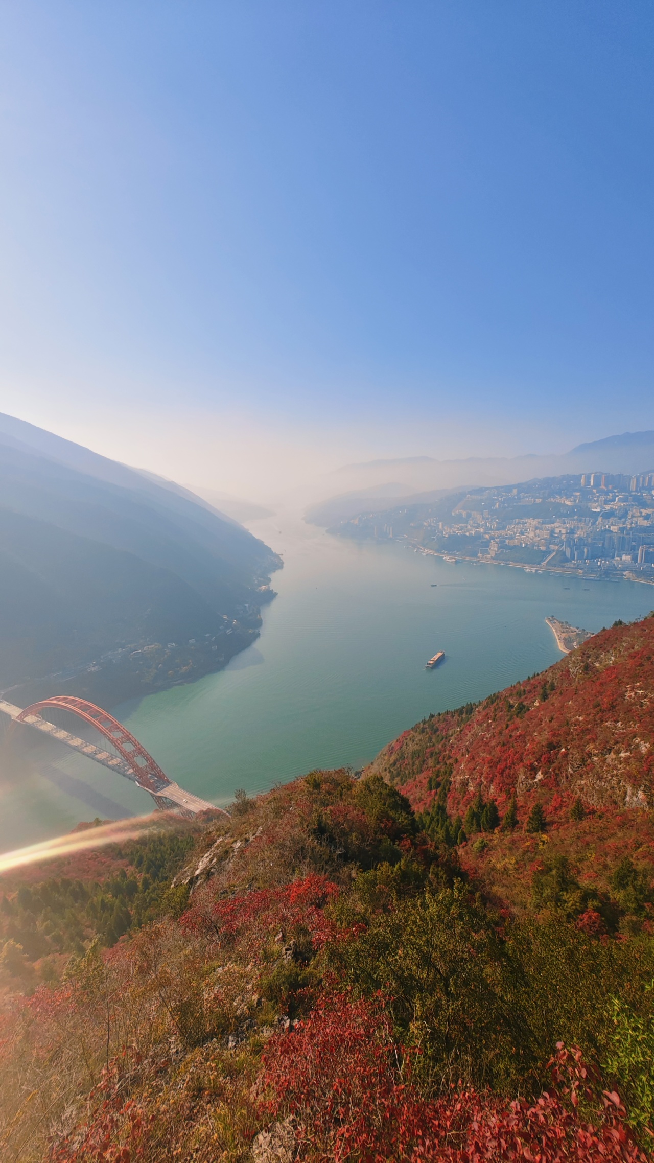 沿着健身步道拾级而上,站在观景亭内,可观秀美的巫峡、长江壮丽的高峡平湖、巫山十二峰胜景、新县城全貌。进入冬季,文峰山上漫山红遍,十分壮观。